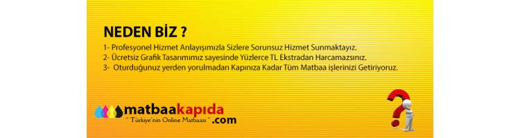 Artık matbaa işlerinizde hiç yorulmayacaksınız ! Siparişlerinizi Telefonla yada internet sitemizden sipariş veriyorsunuz. Bizde Tüm Türkiye ' ye Kapınıza kadar teslim ediyoruz.